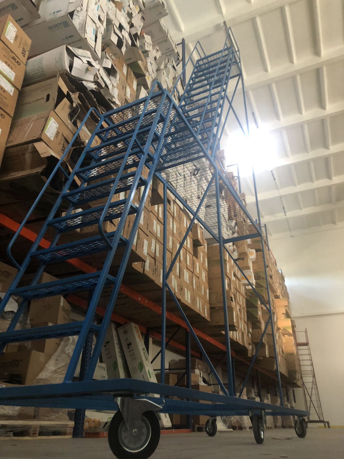 Торговий дім "Складська техніка" береться до виконання нестандартних завдань. За запитом одного клієнта нашою компанією було сконструйовано та вироблено складські передаїжні сходи з висотою до верхнього майданчика 6,5 метра!