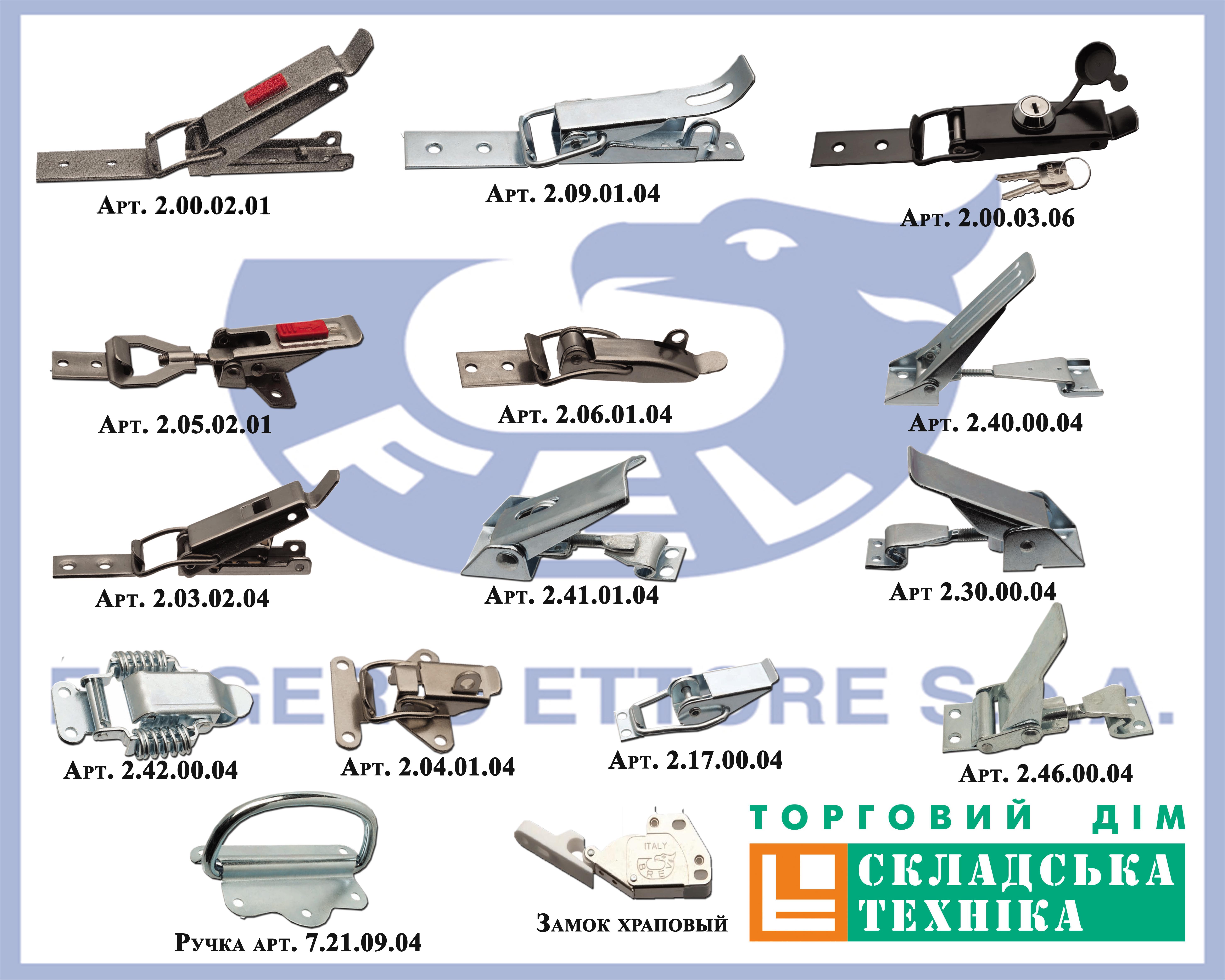 Враховуючи зростання попиту та потреби клієнтів, що постійно змінюються, Торговий дім «Складська техніка» пропонує розширений асортимент кріпильної фурнітури фірми Frigerio (Італія). Наша компанія пропонує широкий вибір затворів, ручок для ящиків, куточків, здатних задовольнити практично будь-які потреби ринку.